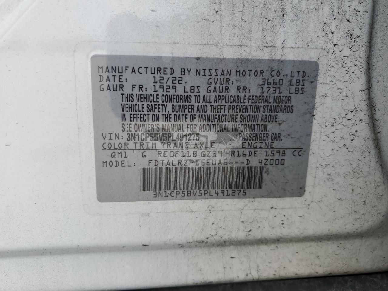 • VIN: 3N1CP5BV5PL491275