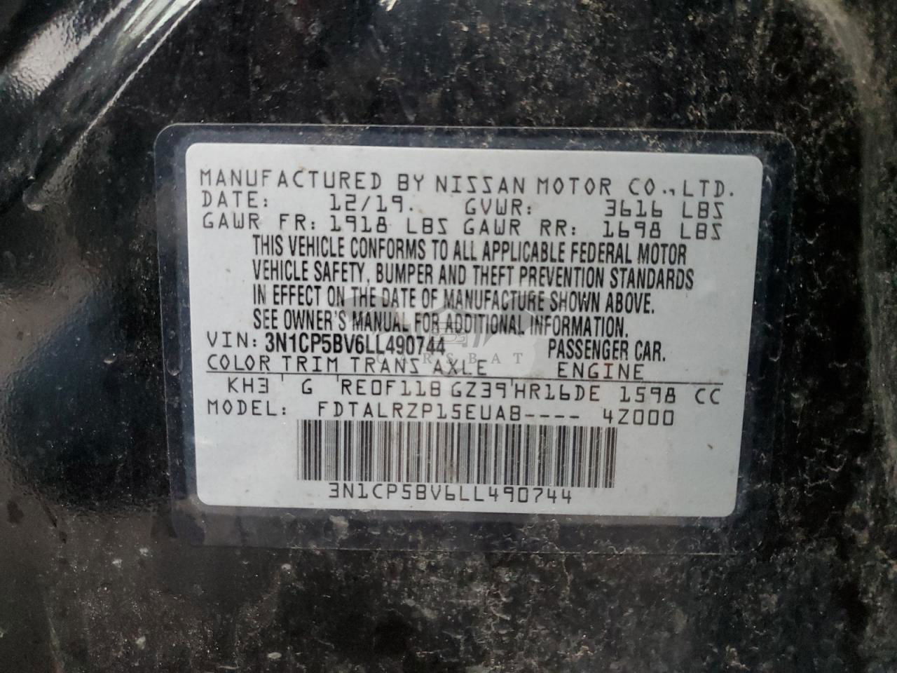 • VIN: 3N1CP5BV6LL490744