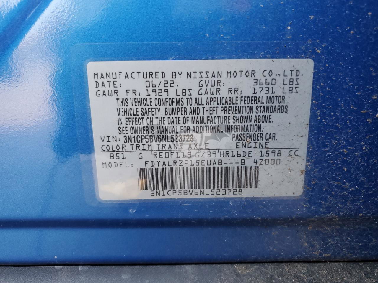 • VIN: 3N1CP5BV6NL523728