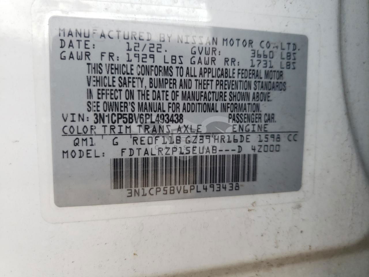 • VIN: 3N1CP5BV6PL493438