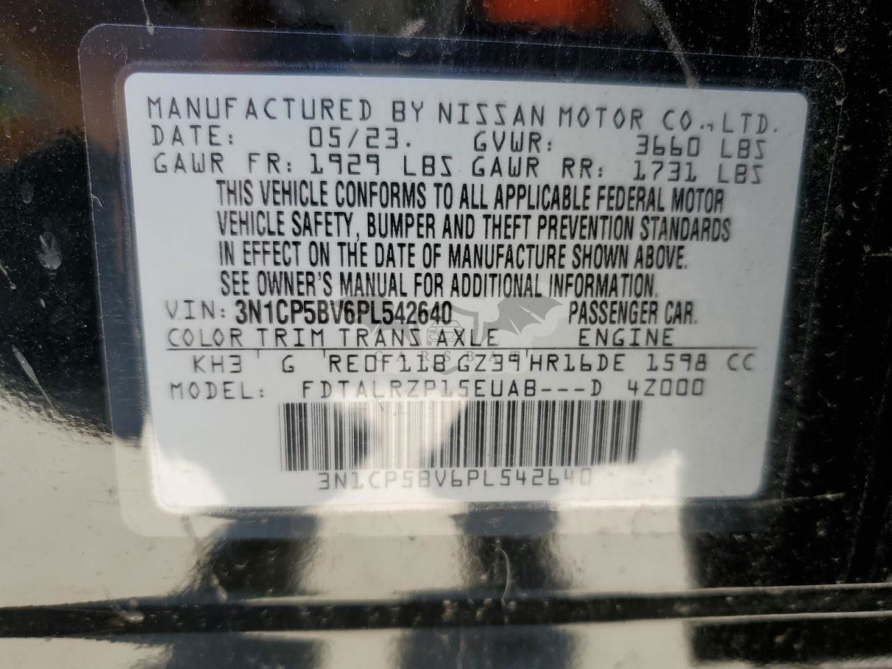 • VIN: 3N1CP5BV6PL542640