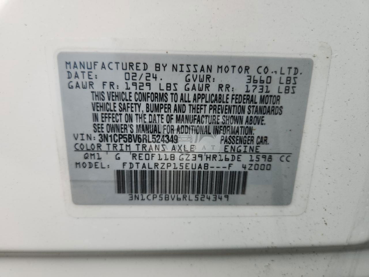 • VIN: 3N1CP5BV6RL524349