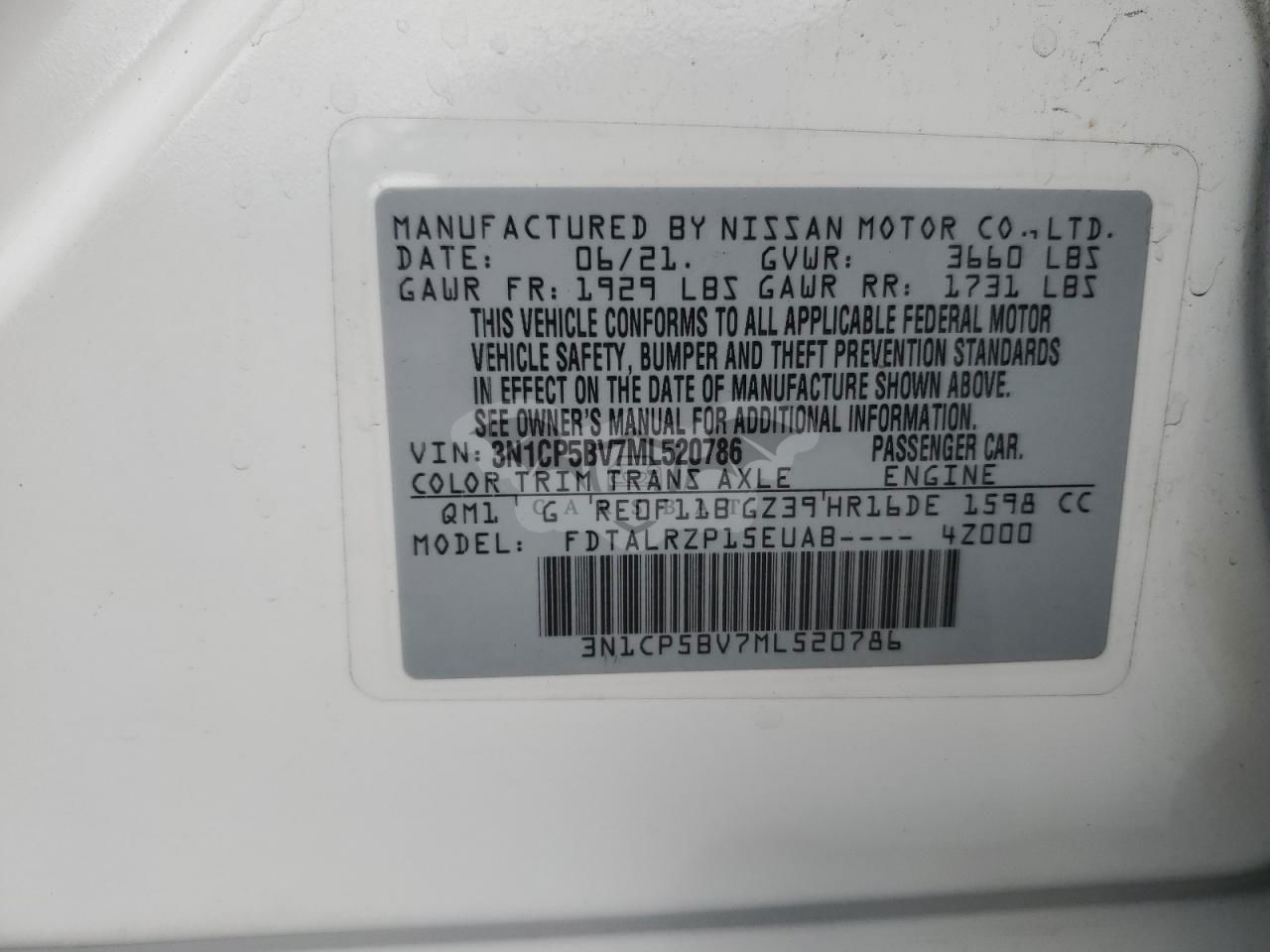 • VIN: 3N1CP5BV7ML520786