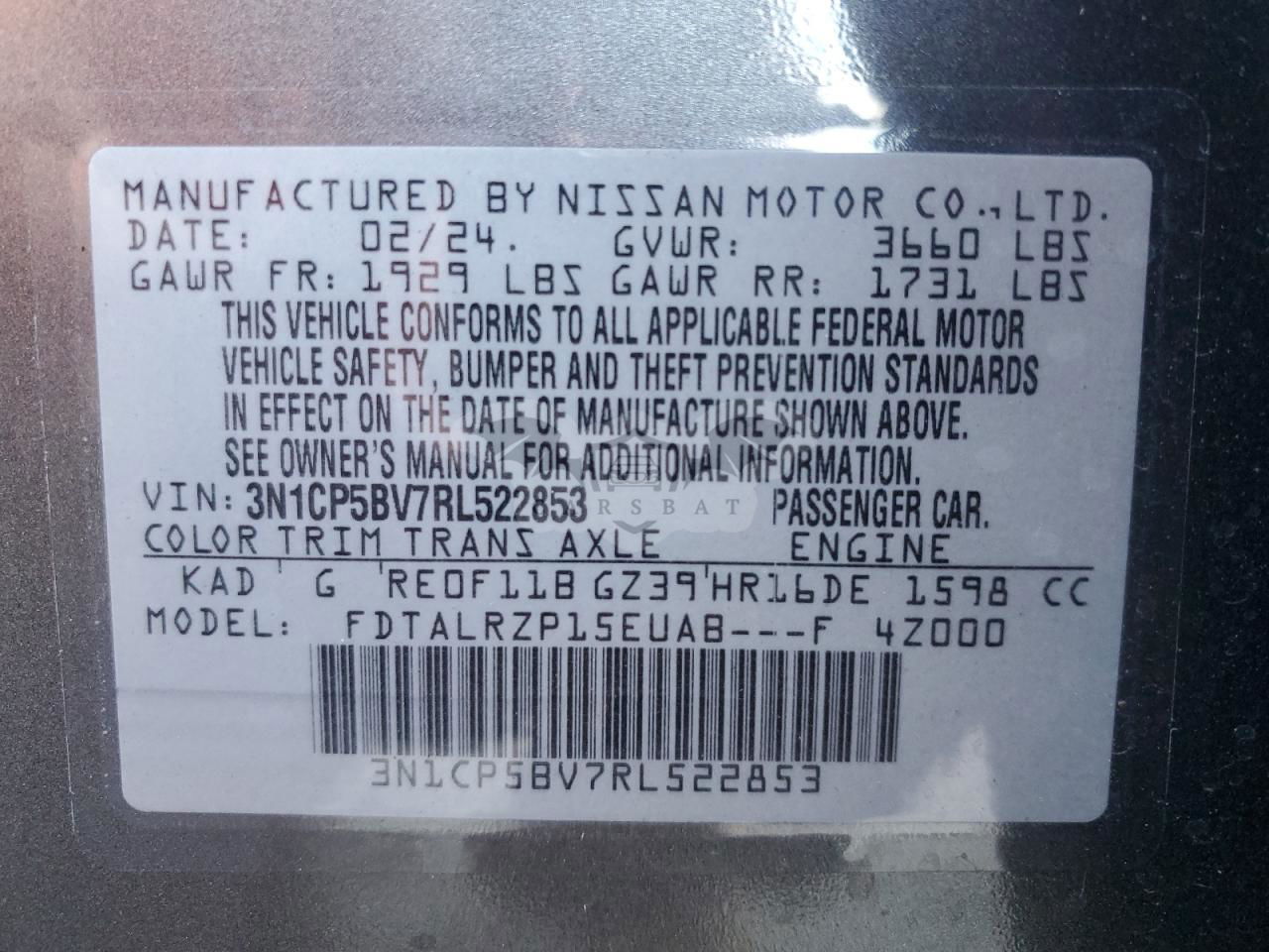 • VIN: 3N1CP5BV7RL522853