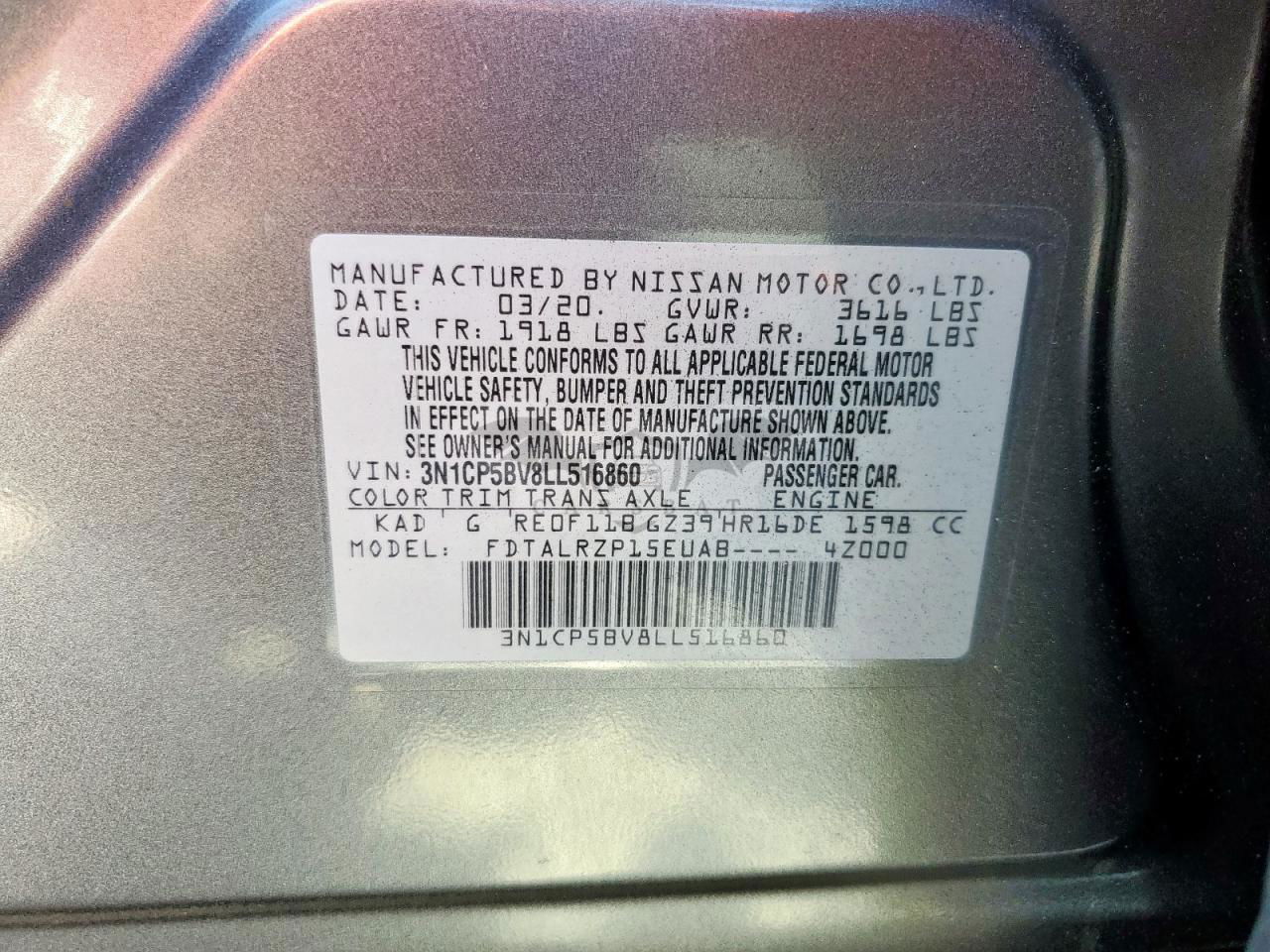 • VIN: 3N1CP5BV8LL516860