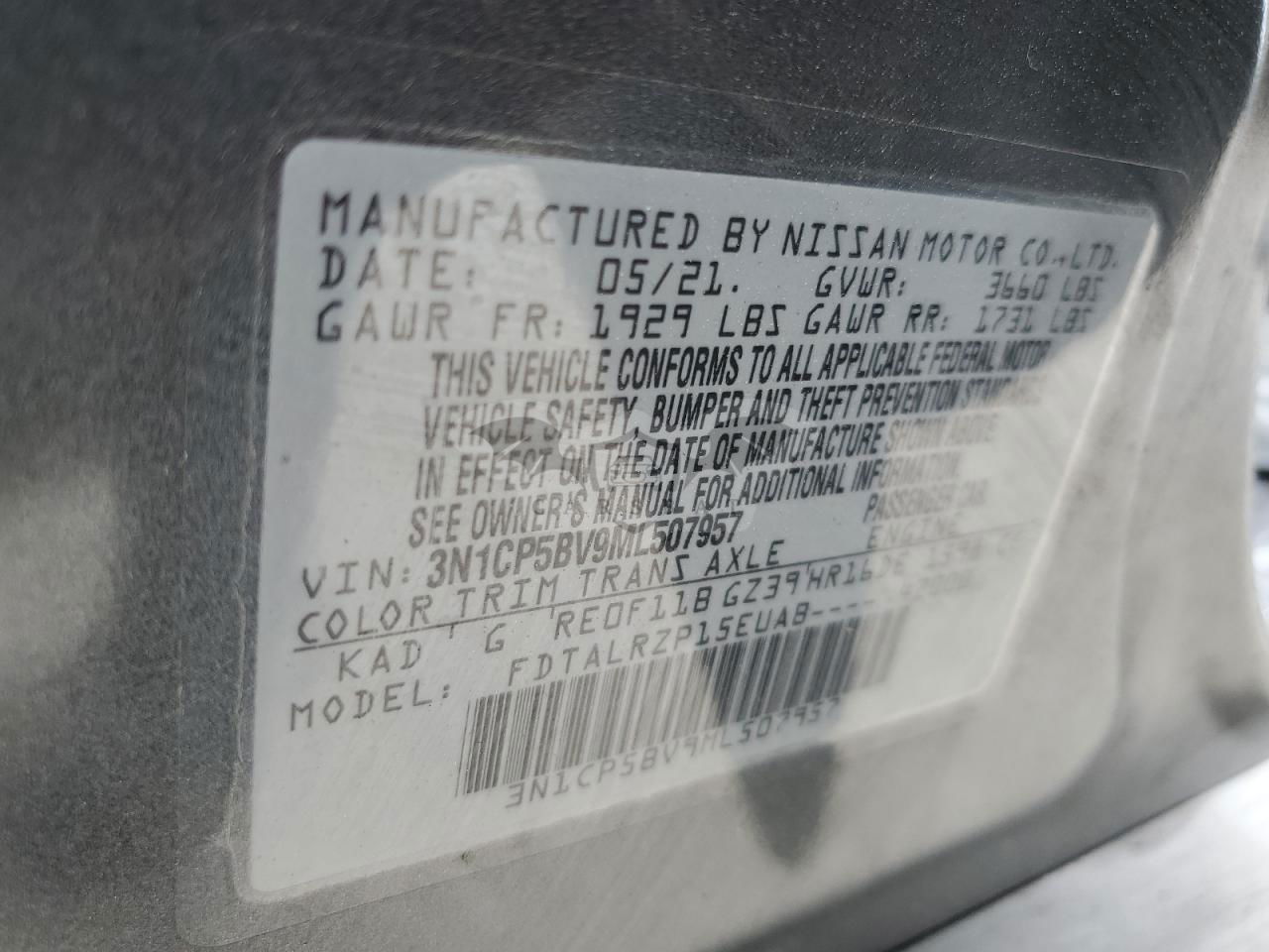 • VIN: 3N1CP5BV9ML507957