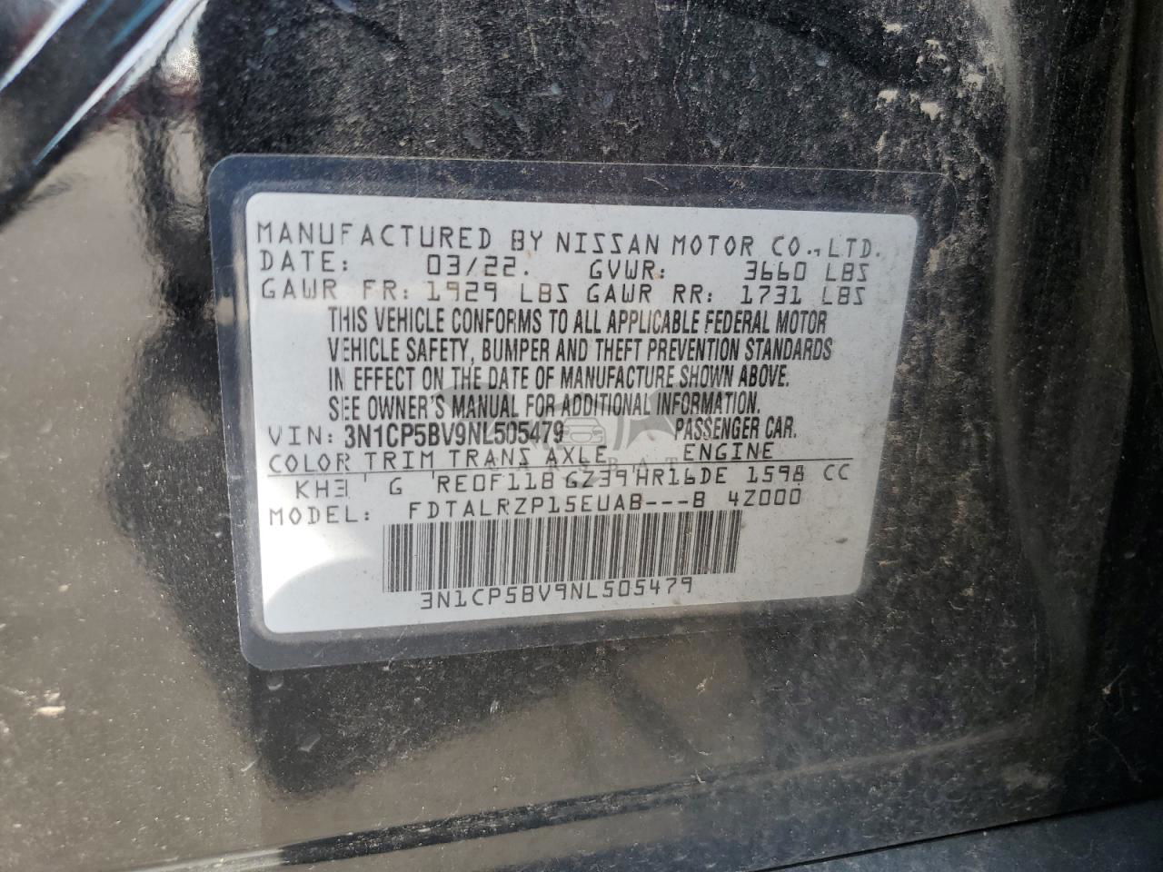 • VIN: 3N1CP5BV9NL505479