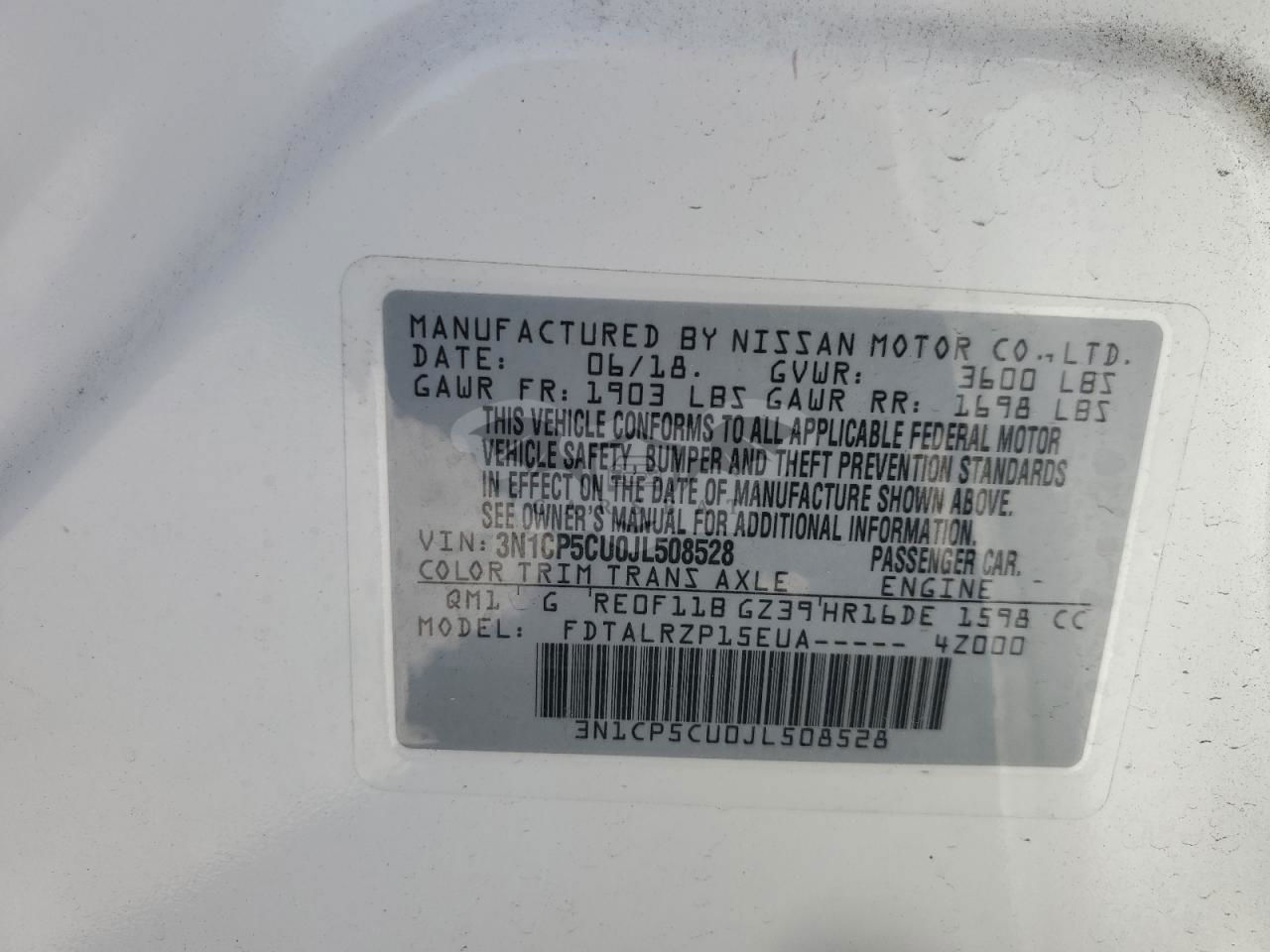 • VIN: 3N1CP5CU0JL508528