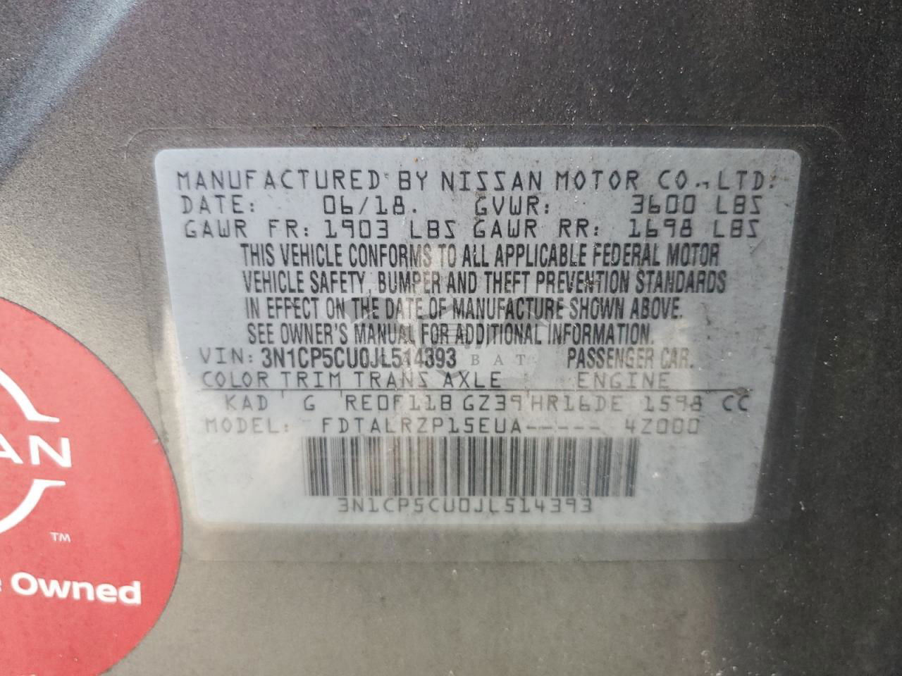 • VIN: 3N1CP5CU0JL514393