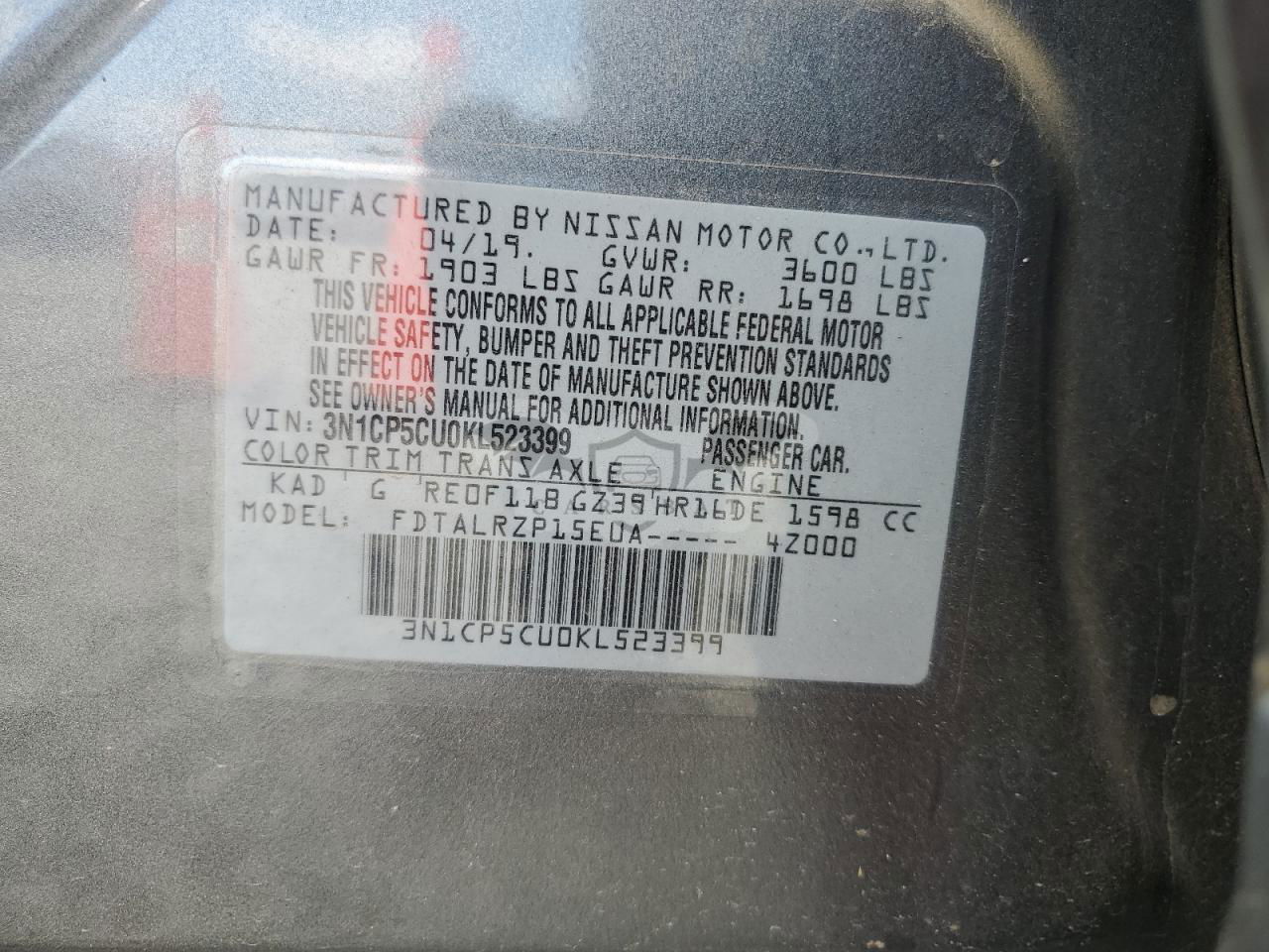• VIN: 3N1CP5CU0KL523399