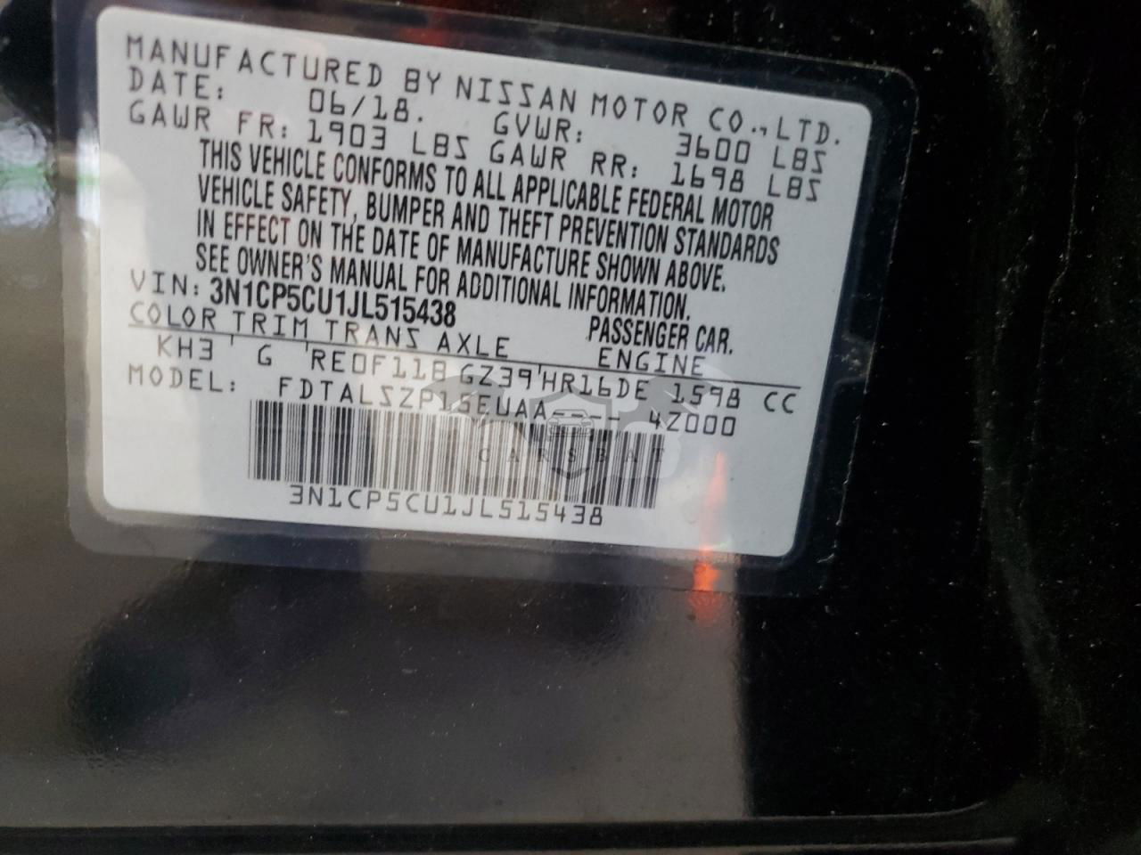 • VIN: 3N1CP5CU1JL515438
