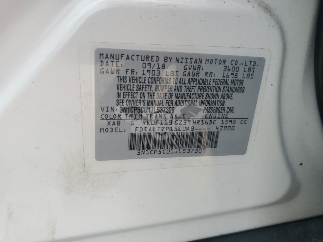 • VIN: 3N1CP5CU1JL537309