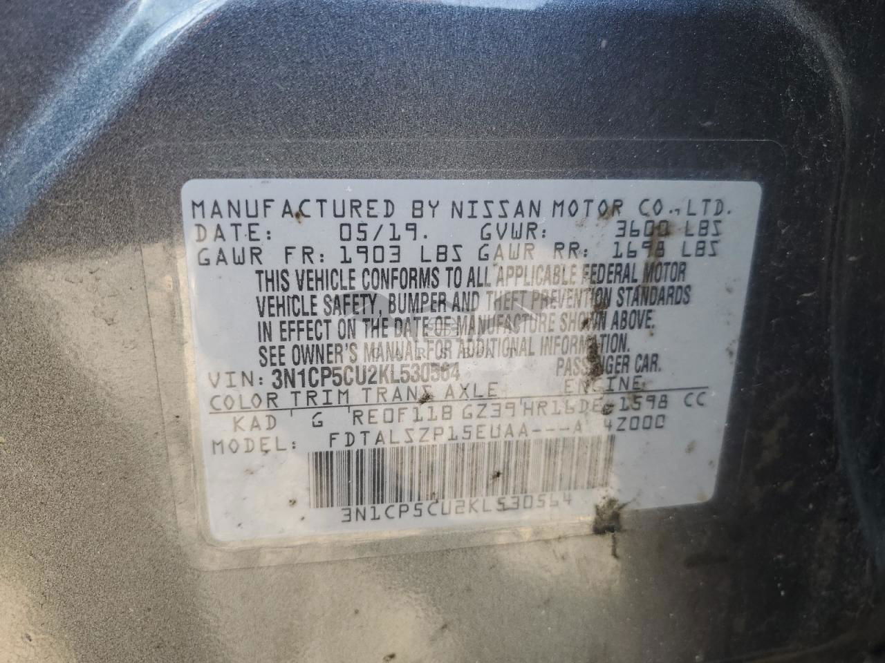 • VIN: 3N1CP5CU2KL530564