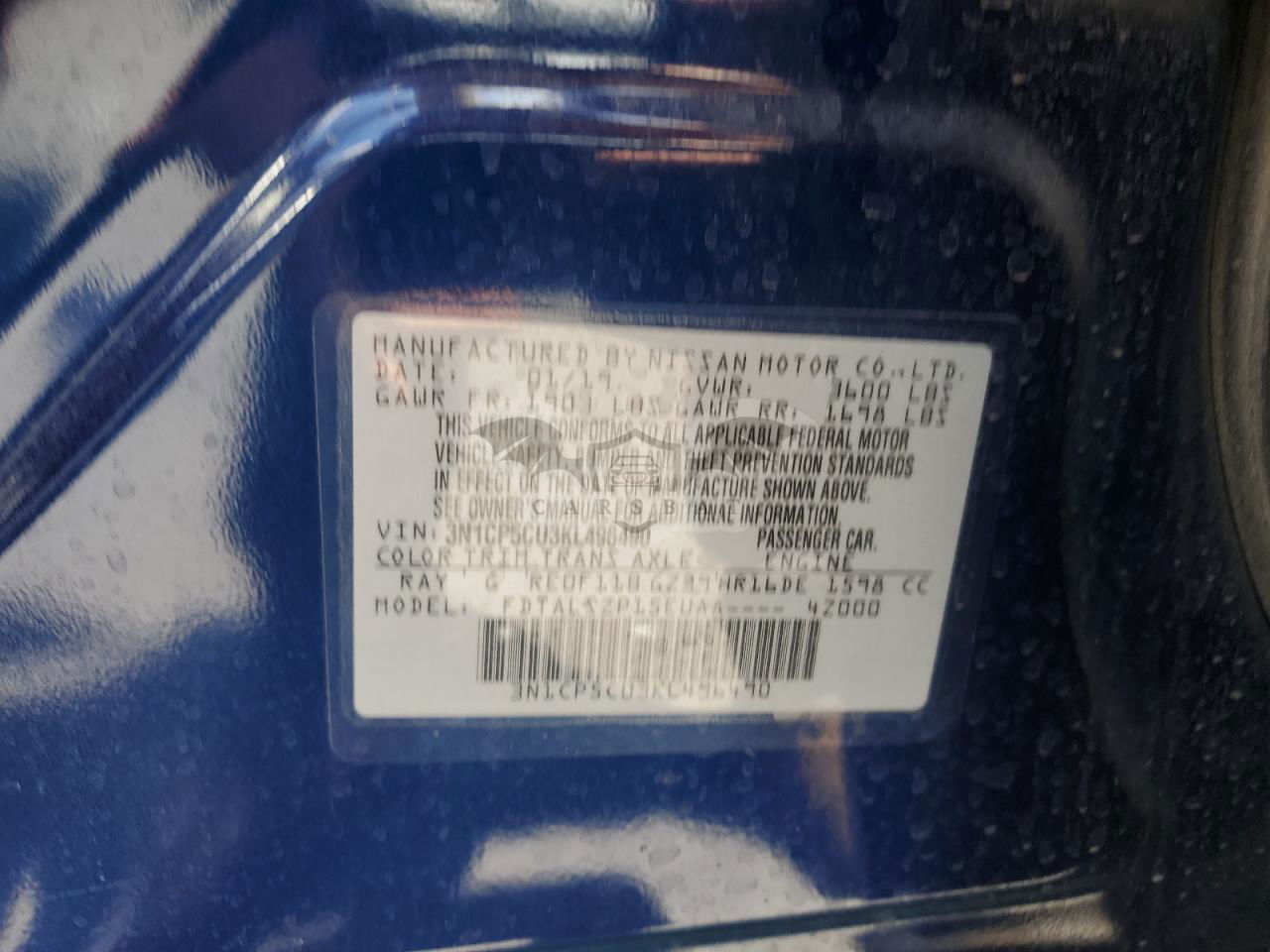 • VIN: 3N1CP5CU3KL496490
