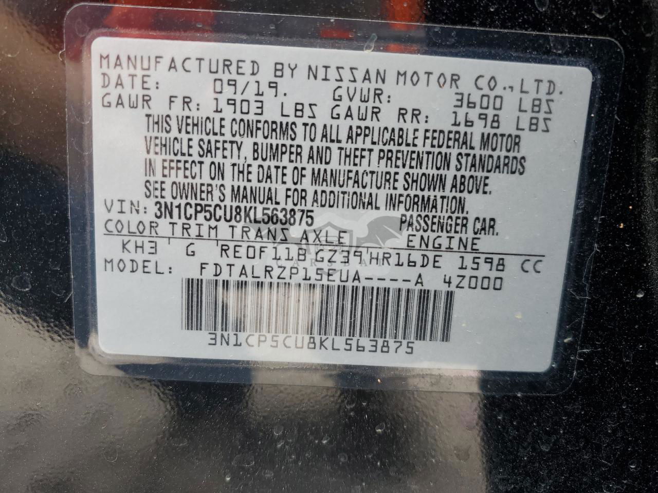 • VIN: 3N1CP5CU8KL563875