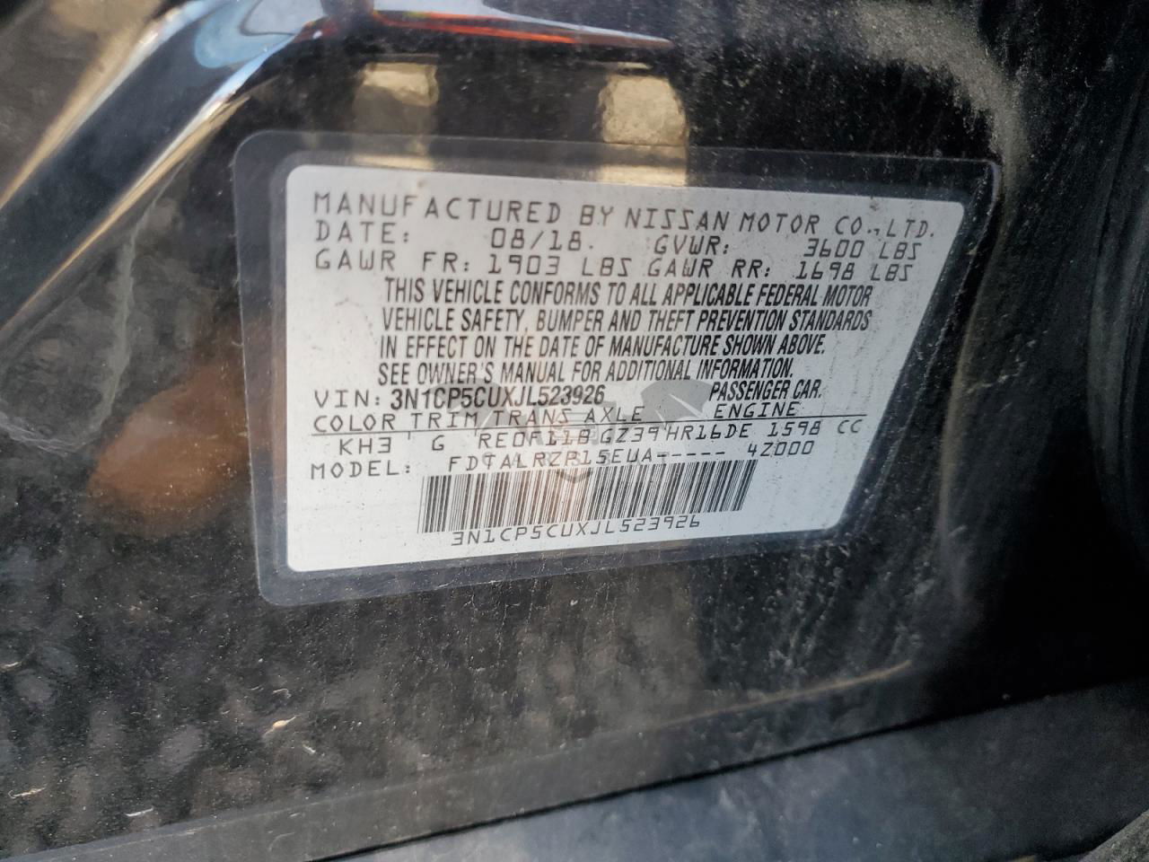 • VIN: 3N1CP5CUXJL523926