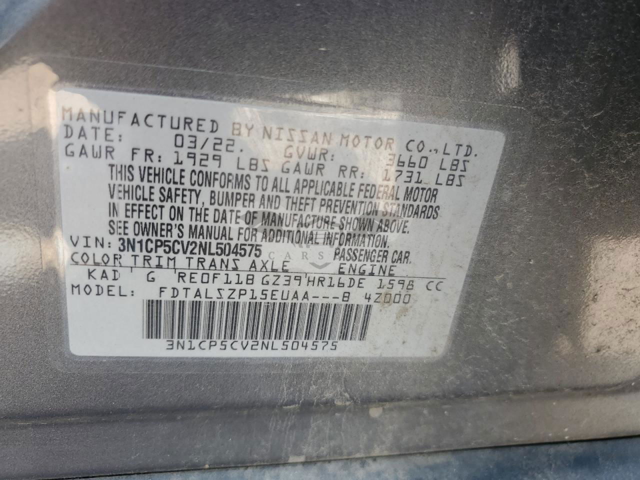 • VIN: 3N1CP5CV2NL504575