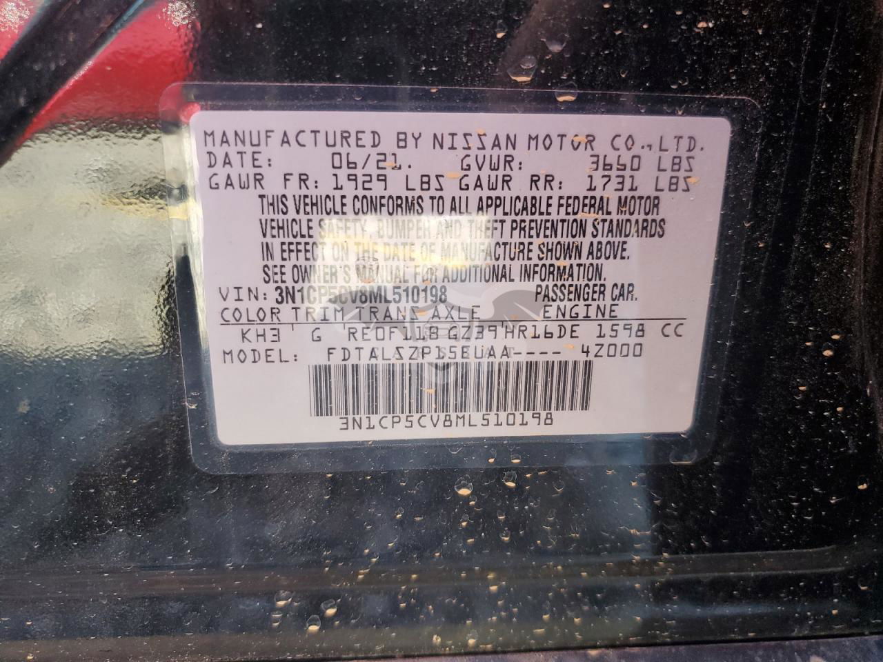 • VIN: 3N1CP5CV8ML510198