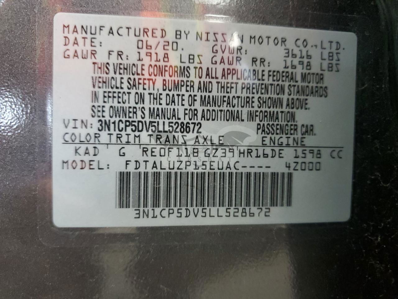 • VIN: 3N1CP5DV5LL528672