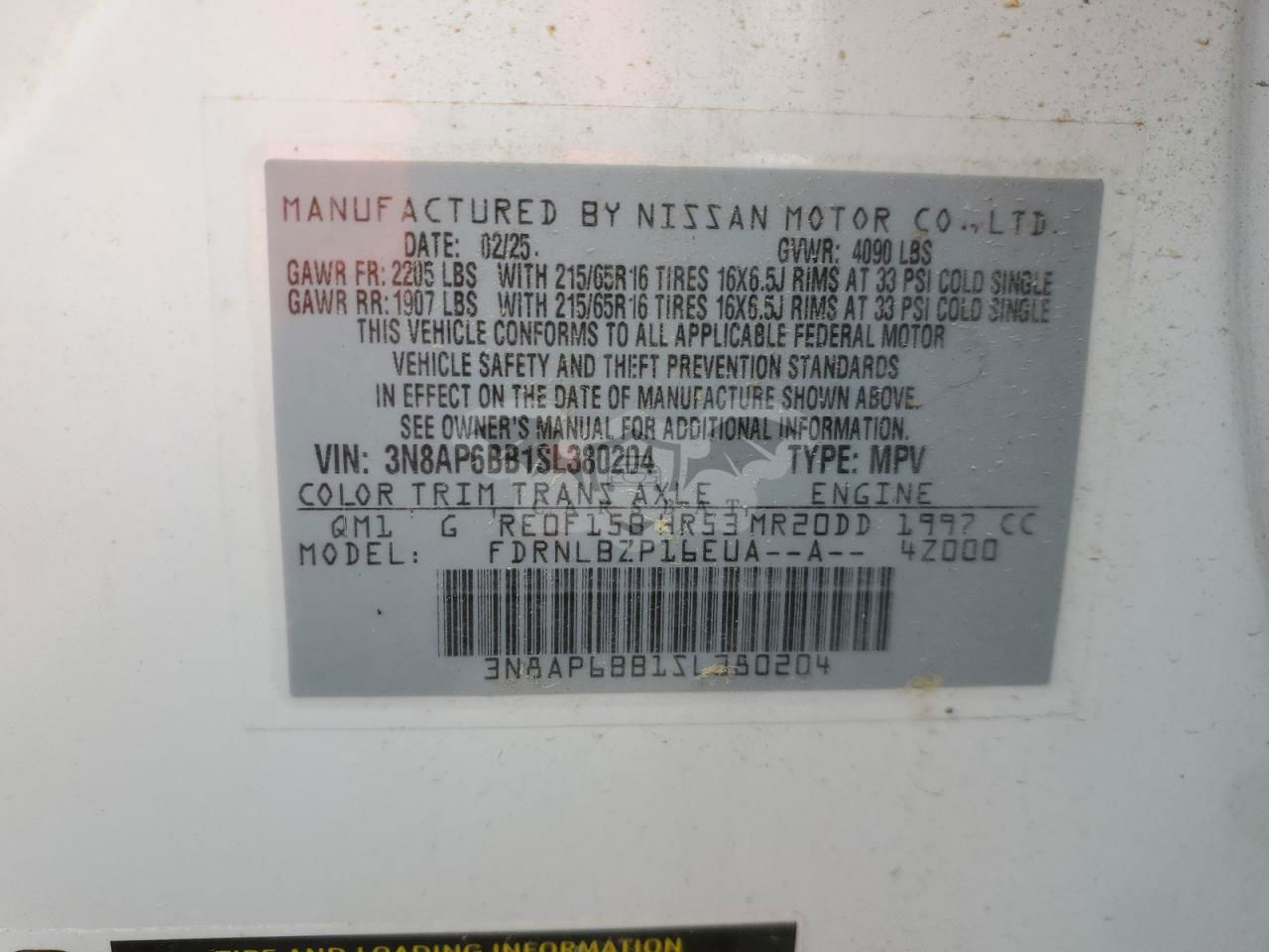 • VIN: 3N8AP6BB1SL380204