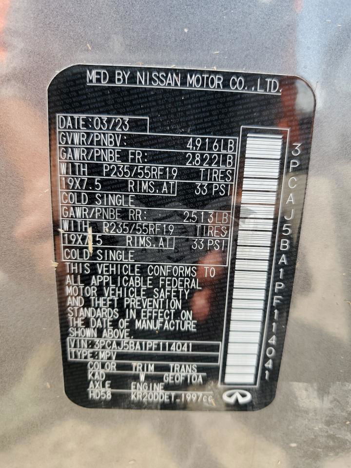 Srebrny Infiniti QX50 LUXE 2.0L 4 2023 roku | Benzyna