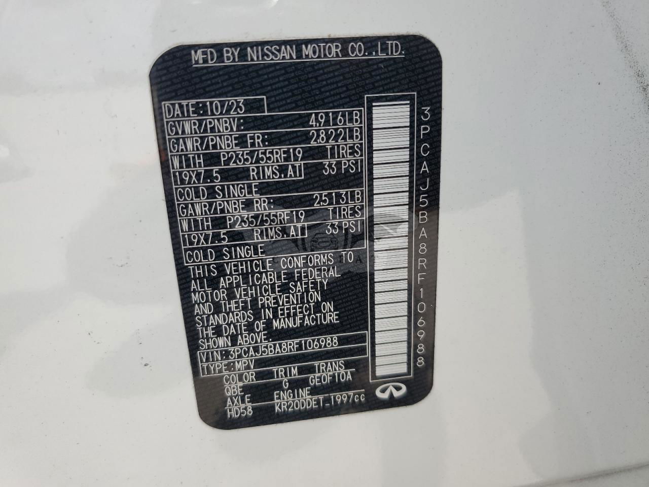 Biały Infiniti QX50 LUXE 2.0L 4 2024 roku | Benzyna