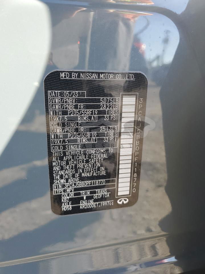 Szary Infiniti QX50 2.0L 4 2023 roku | Benzyna
