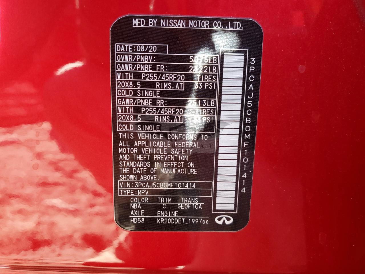 Czerwony Infiniti QX50 ESSENTIAL 2.0L 4 2021 roku | Benzyna