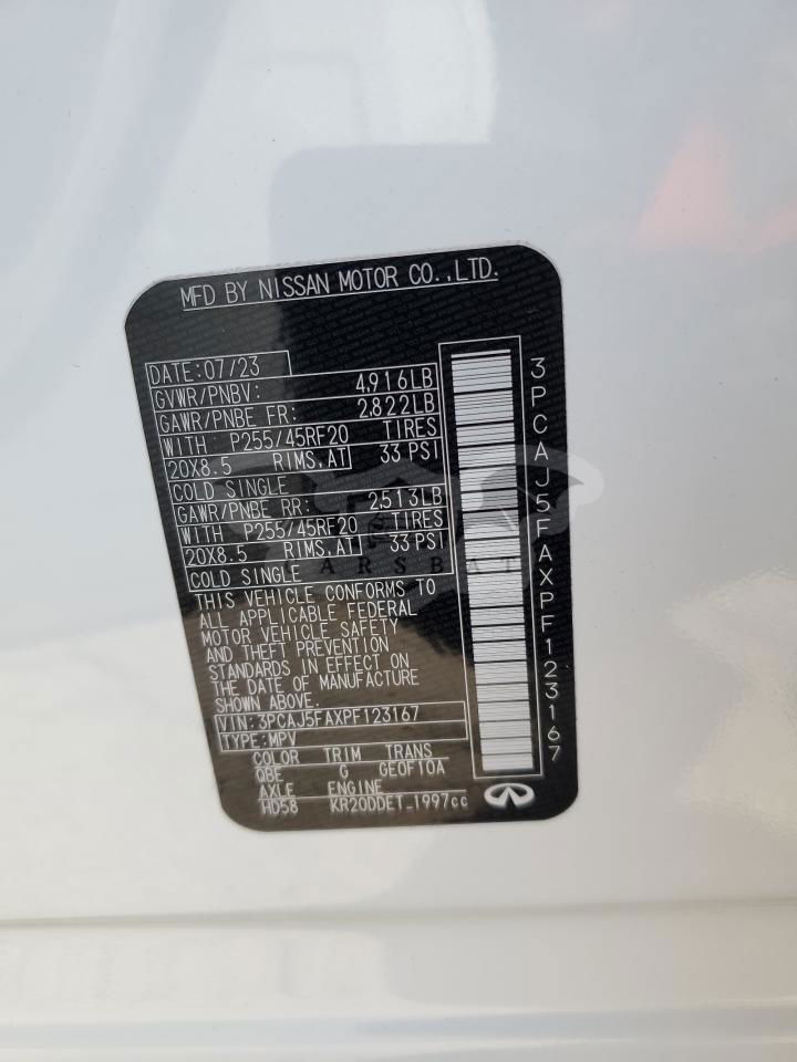 Biały Infiniti QX50 SPORT 2.0L 4 2023 roku | Benzyna