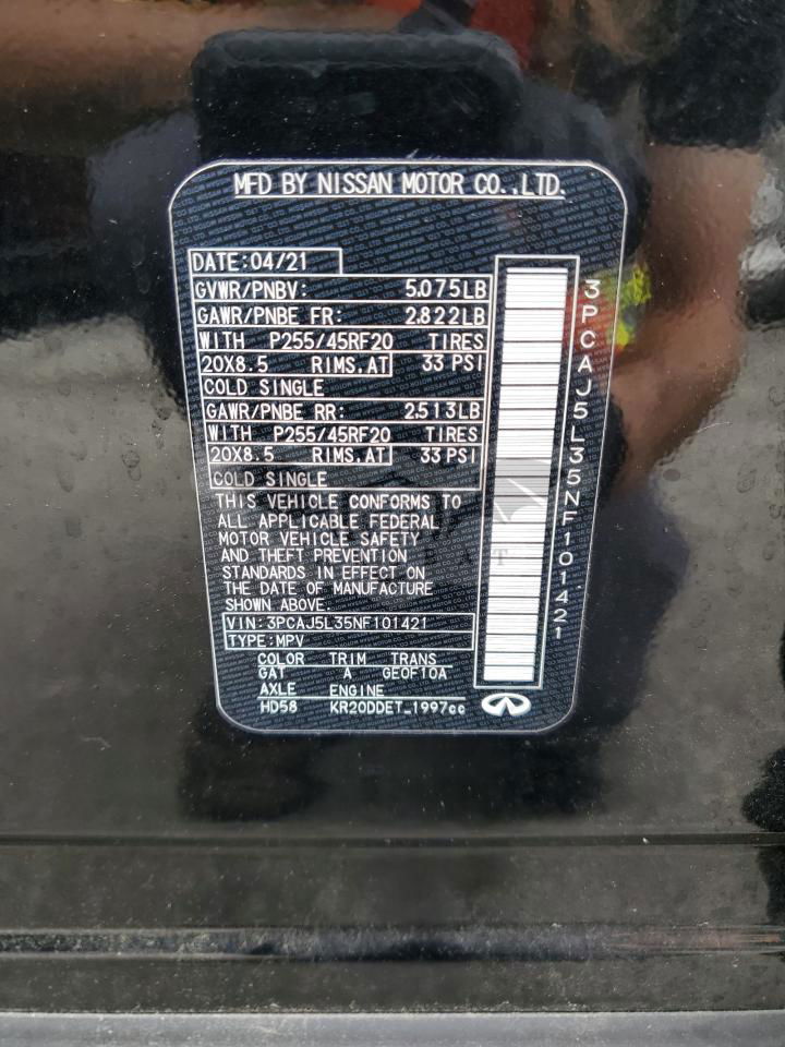Czarny Infiniti QX50 SENSORY 2.0L 4 2022 roku | Benzyna