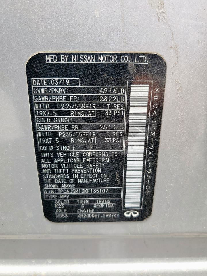 Srebrny Infiniti QX50 ESSENTIAL 2.0L 4 2019 roku | Benzyna