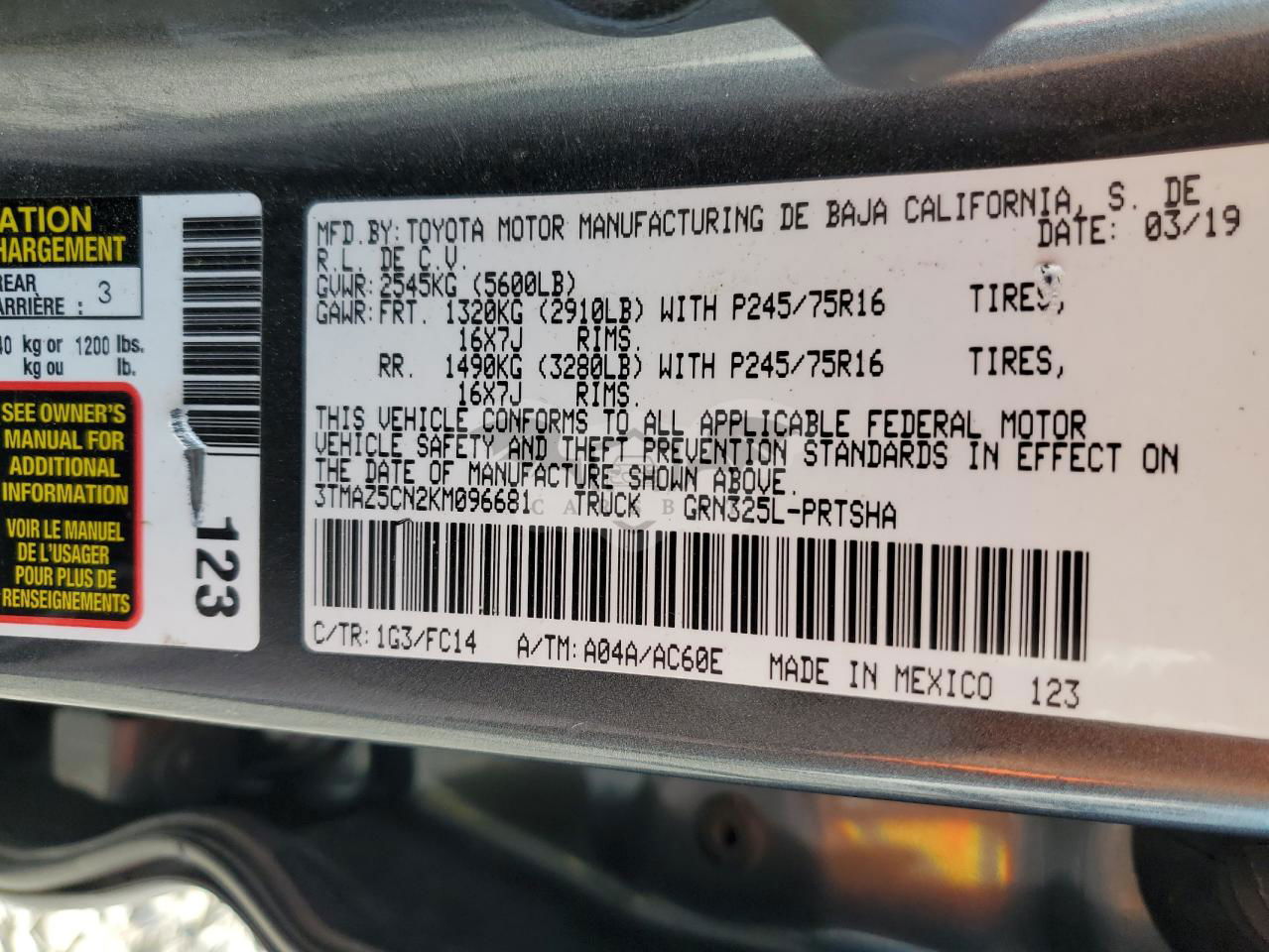 • VIN: 3TMAZ5CN2KM096681