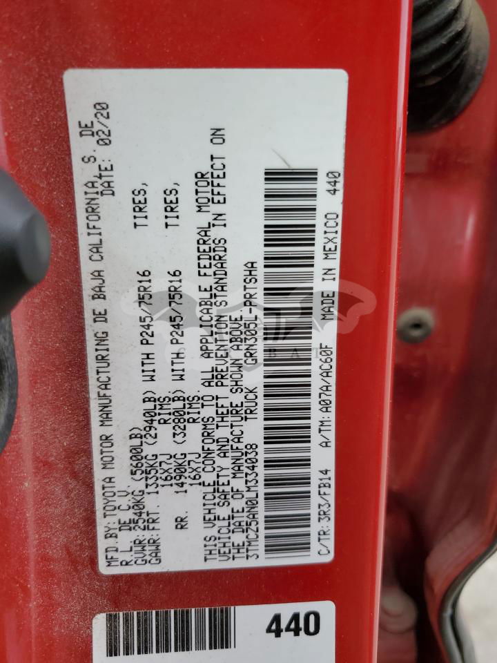 • VIN: 3TMCZ5AN0LM334038