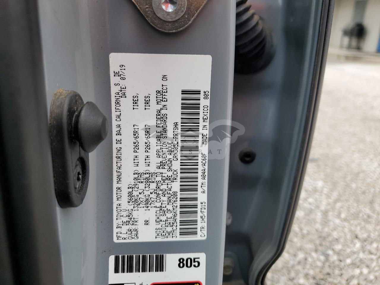• VIN: 3TMCZ5AN6KM276208