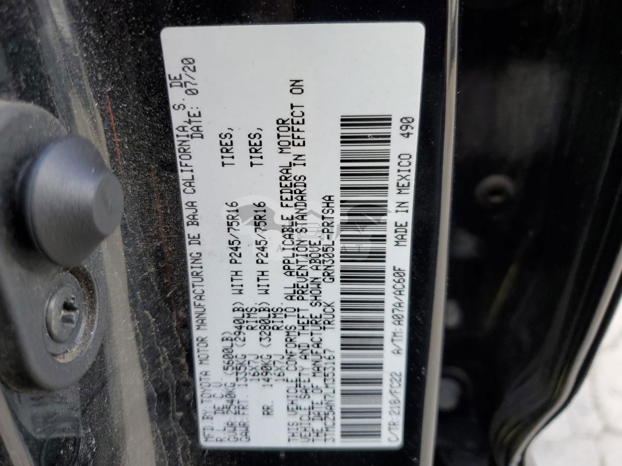 • VIN: 3TMCZ5AN7LM353167