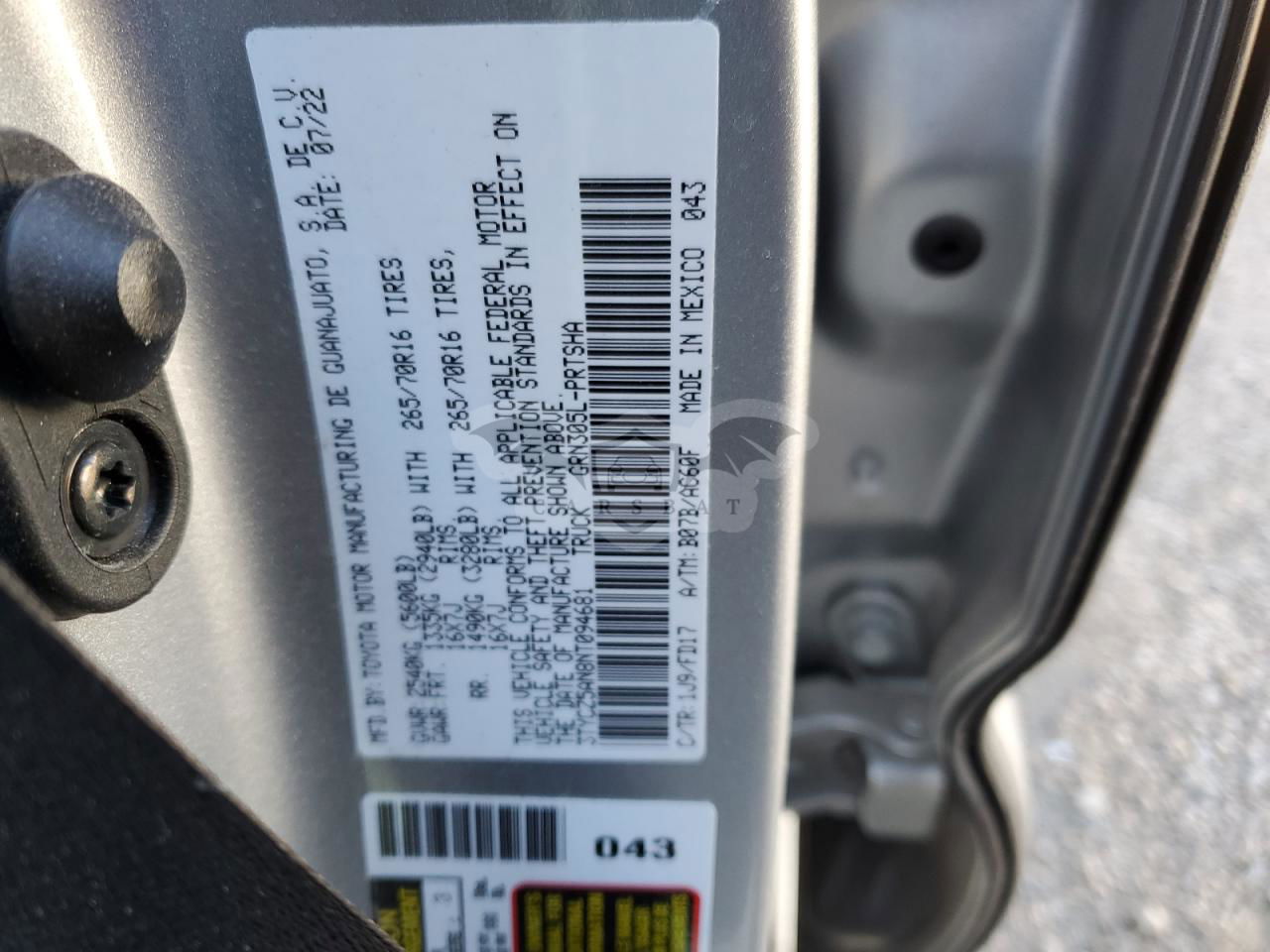 • VIN: 3TYCZ5AN8NT094681