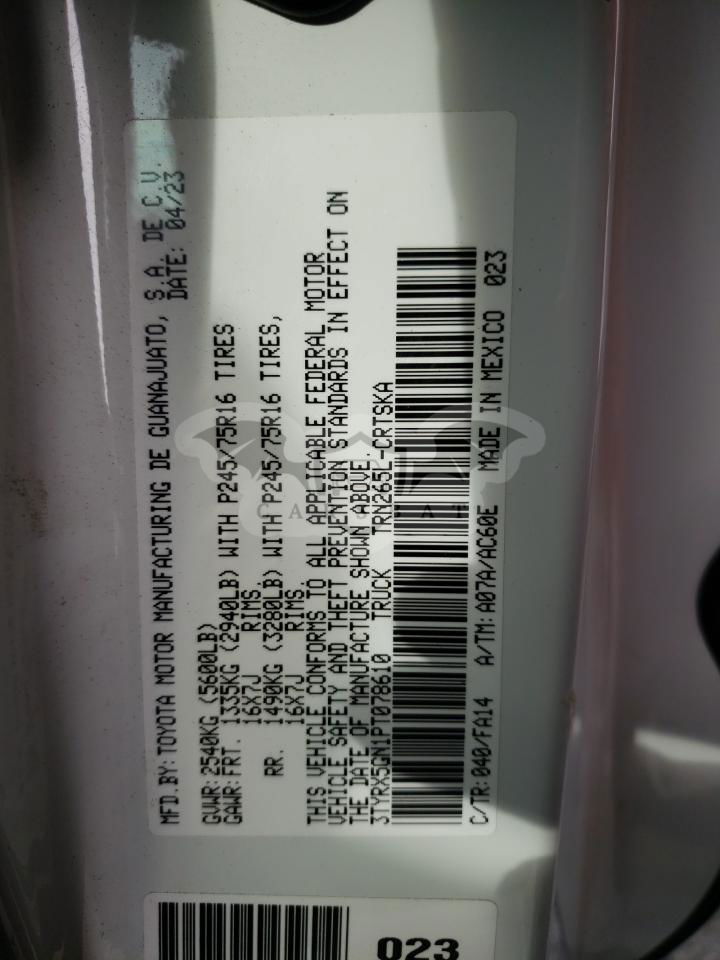 • VIN: 3TYRX5GN1PT078610