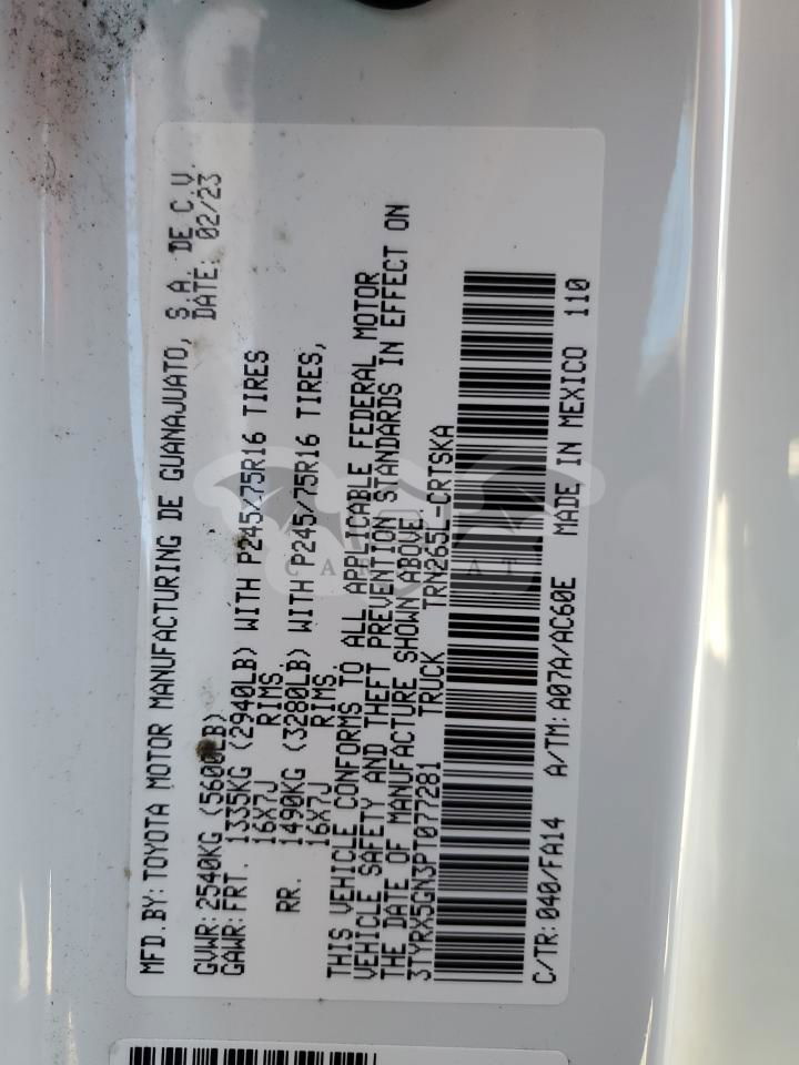 • VIN: 3TYRX5GN3PT077281
