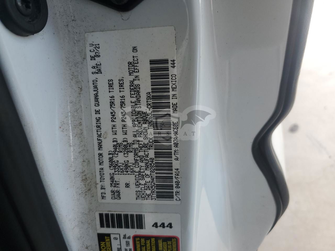 • VIN: 3TYRX5GN4MT028540
