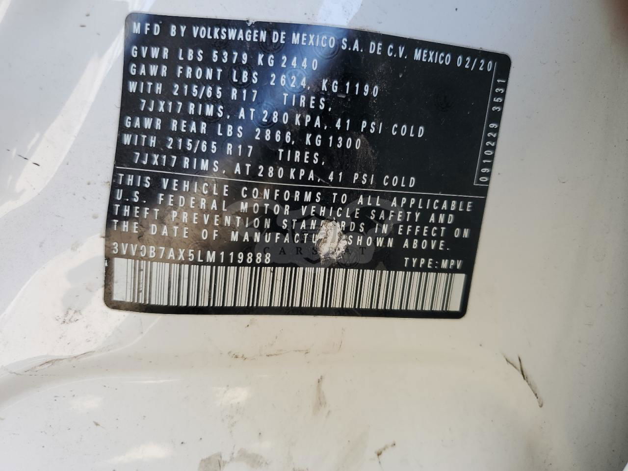 • VIN: 3VV0B7AX5LM119888