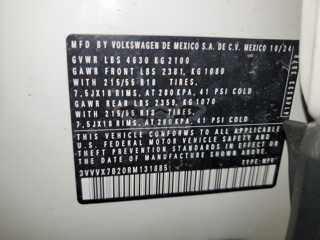 • VIN: 3VVVX7B20RM131885