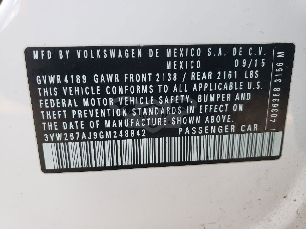 • VIN: 3VW267AJ9GM248842