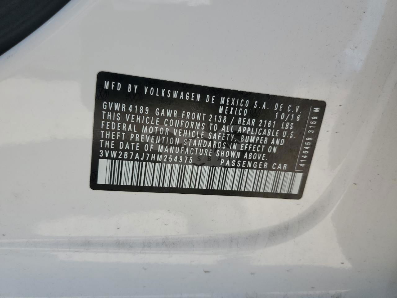 • VIN: 3VW2B7AJ7HM254975