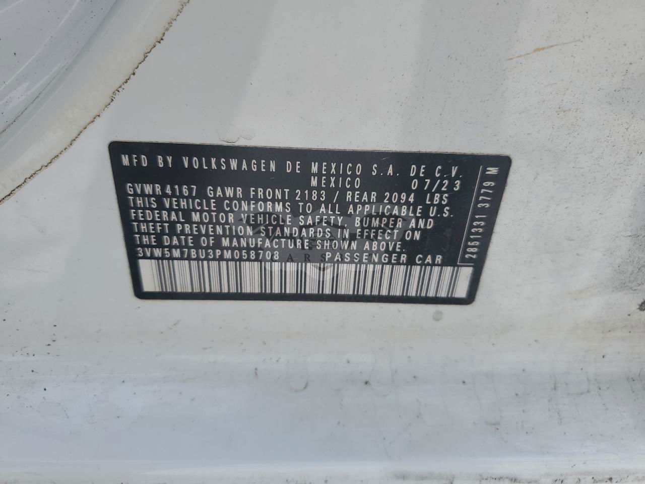 • VIN: 3VW5M7BU3PM058708