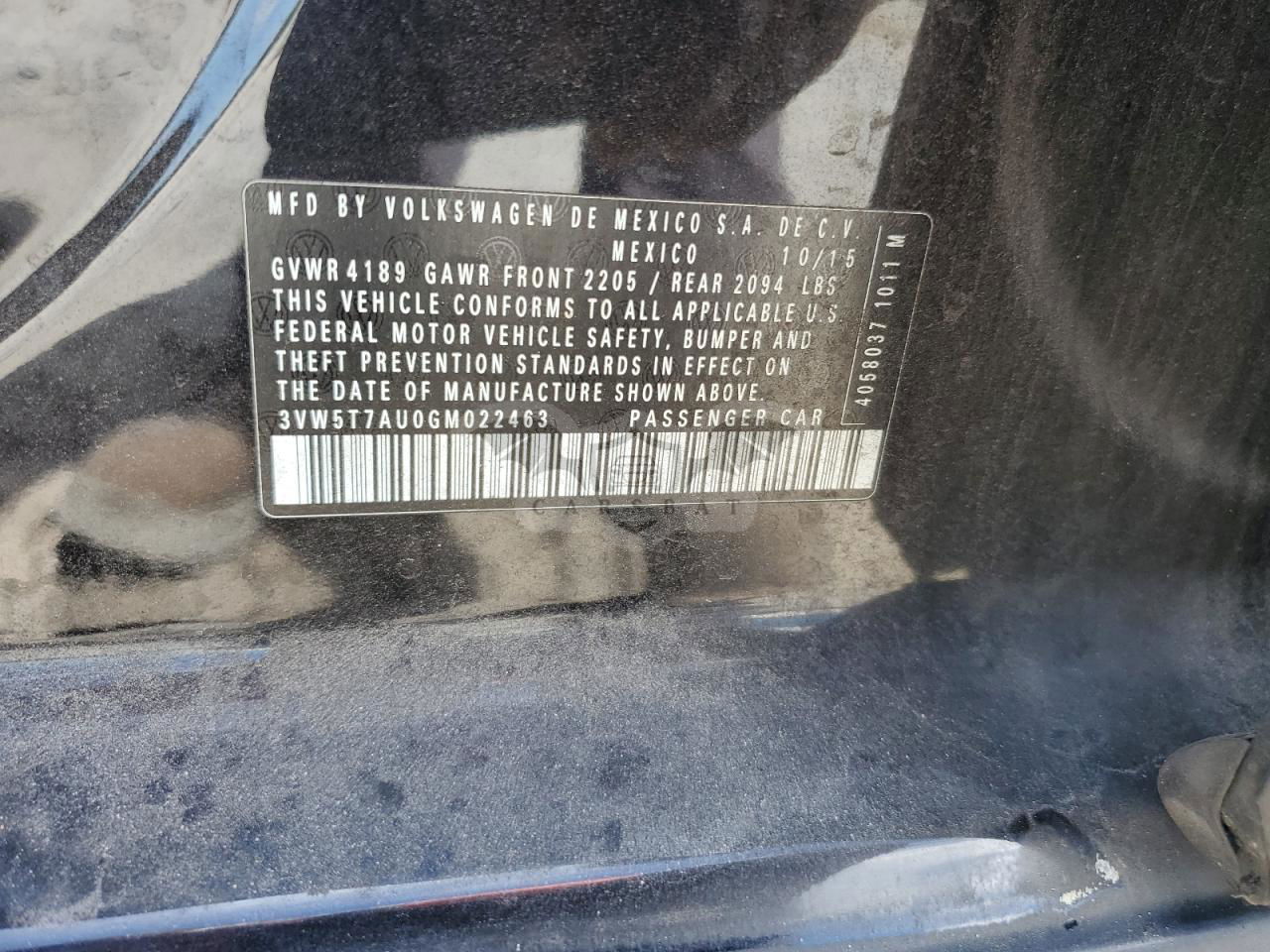 • VIN: 3VW5T7AU0GM022463