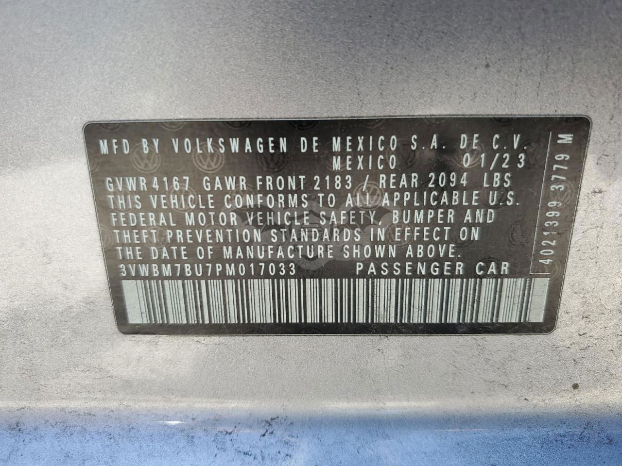 • VIN: 3VWBM7BU7PM017033