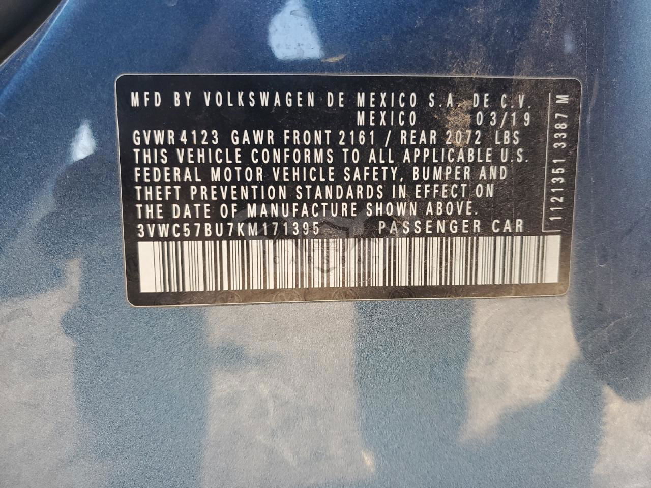 • VIN: 3VWC57BU7KM171395
