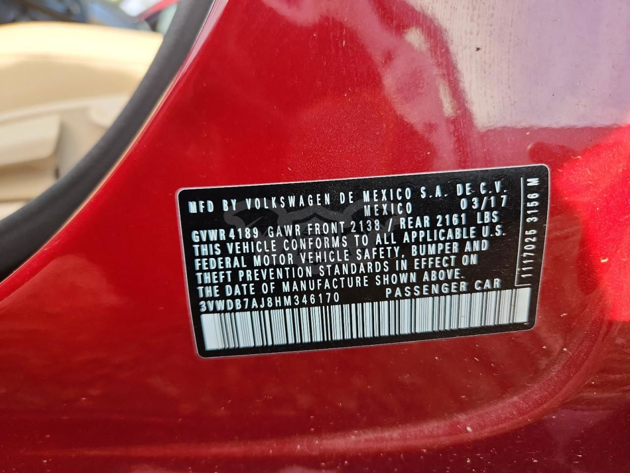 • VIN: 3VWDB7AJ8HM346170