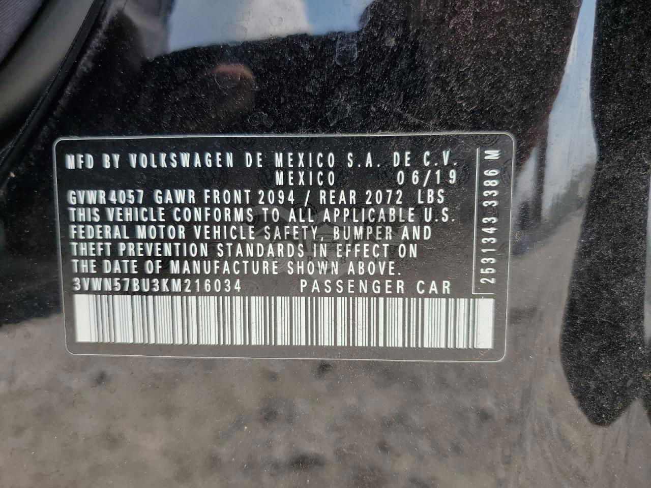 • VIN: 3VWN57BU3KM216034