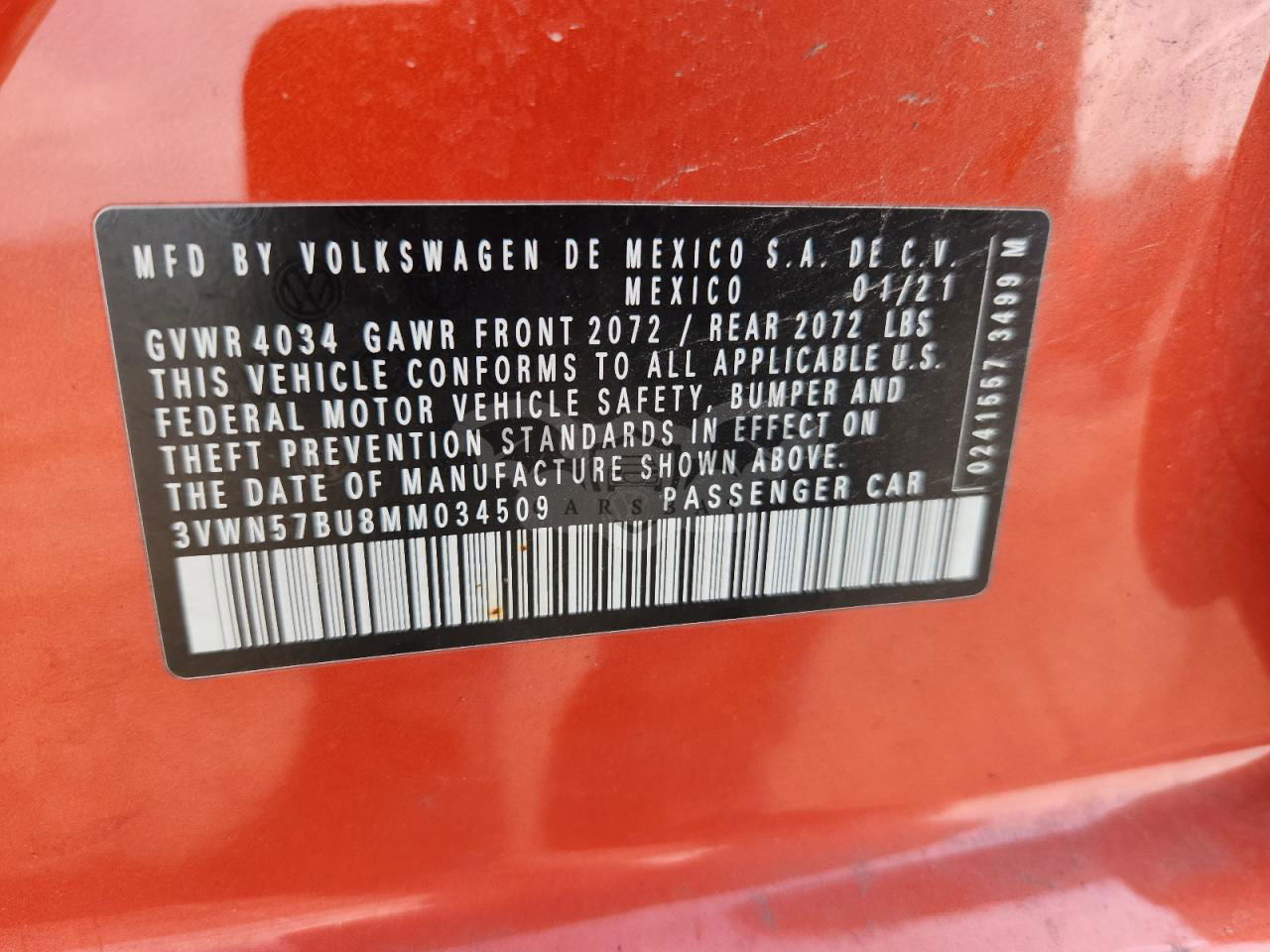 • VIN: 3VWN57BU8MM034509